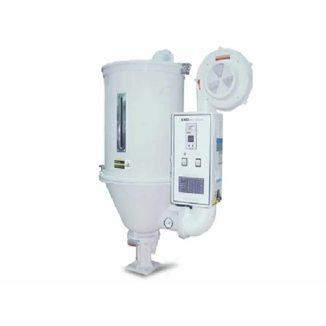 La tolva secadora SHD es utilizada para eliminar la humedad de las resinas plásticas antes del procesamiento en máquinas de inyección o extrusión. El secado se realiza mediante aire caliente circulante que mantiene una temperatura constante, evitando defectos en el producto final como burbujas o imperfecciones. Su cuerpo de acero inoxidable, control de temperatura digital y diseño compacto aseguran eficiencia térmica, durabilidad y fácil integración con el equipo principal. Es fundamental en industrias que trabajan con materiales higroscópicos como PET, PA o ABS.